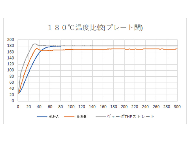 そんな時に「ヴェーダ THE ストレート for Pro 」は活躍してくれます。初速の温度がしっかりと上がりますし、熱伝導性がよく、1回の挟み込みできれいにクセが伸びてくれます。アシスタントが施術する場合でも僕らと同じぐらいの所要時間でアイロンワークを終えられるほどの時短に繋がります。製品の価格的には中~高価格帯に当たりますが、このアイロンを導入することでかなりの時短につながると考えれば、生産性という面から導入は大きなメリットになるでしょう。