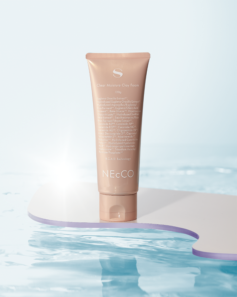 天然モイストクレイで毛穴悩みとごわつきオフ。キメ細かい弾力泡が摩擦レスで、潤いを保ちながら洗いあげ、次のスキンケアが浸透※しやすい状態に。浸透型ビタミンC誘導体で透明感UP。