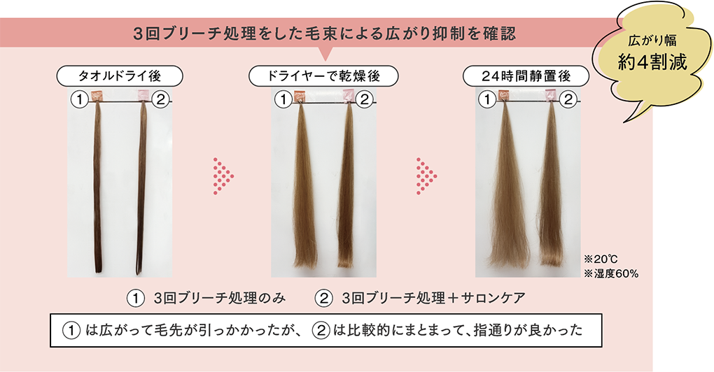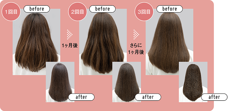 エクラリティを3回続けた結果、回を追うごとに髪のコンディションが整っている。これにより髪の輝きが増し、デザインの幅が広がる。