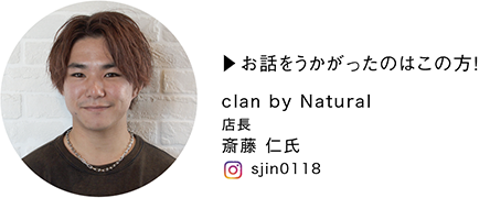 6店舗を展開するNaturalグループの中でも“髪の病院”をコンセプトに髪質改善ストレートを打ち出し、顧客単価2万円超を達成するclan by Natural。県外からもツヤ髪を求めて顧客が集まる同店は今年春にイノアカラーを導入し顧客単価と満足度アップにつなげているといいます。代表の齋藤 仁さんに導入の背景や成功の理由を聞きました。
