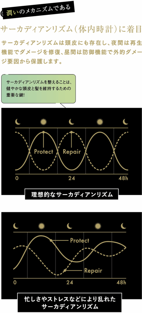 サブリミック史上、最高のプレミアムライン「タイムティック」は髪と頭皮を同時にケアし、免疫力をアップ。免疫力アップの土台となるサーカディアンリズムに着目し、繰り返す複合的な髪と頭皮の悩みを同時に短時間で解決へと導きます。