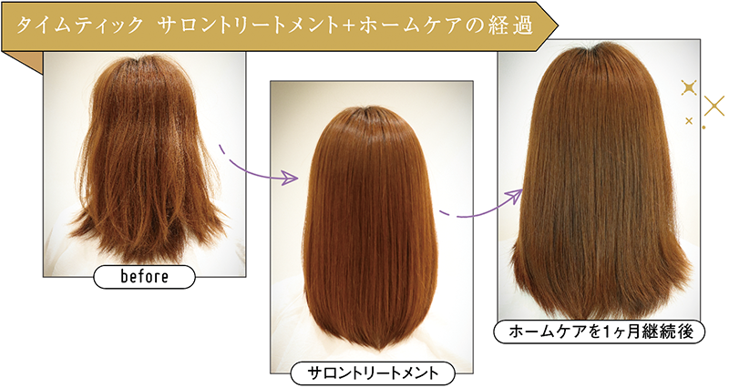 Un amiではオイル系トリートメントをベースとした中価格帯(4,000~9,000円)と、サブリミックの本格的なサロントリーメントメニュー(60分 13,200円)を提供していますが、当店ではサブリミックが大人気。継続するほどに髪の有効成分がプラスされて髪を修復してくれるので、持続力が高いと好評です。新しく発売されたタイムティックは、通常の価格にトライアル期間は+1,000円で提供しており、今後は様子を見て価格を決めていきたいと考えています。施術を受けたお客様からは「ツヤが違う」「なめらかさが出た」など、潤いだけではない、高い効果実感をいただいています。中でもハイダメージの方やクセ毛の方、髪がゴワつきやすい方には本当におすすめ。施術前とは髪のまとまりも質感もまるで違います。