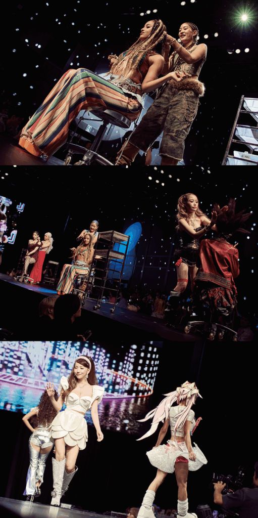 HIP HOP、REGGAE、TECHNO、J-POPなど各音楽ジャンルのiconicなリーダーたちをヘアセットで表現。どのモデルがどの音楽ジャンルに扮しているのか当てながら見ることができるという粋な演出。ステージ中の音楽は各ジャンルのヒットソングミックスとなっており、大人気YouTuberやインフルエンサーたちがモデルとして出演。ヘア、ファッション、音楽を同時に楽しむことができるステージに。