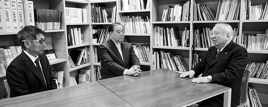 德川宗家第19代当主 德川 家広氏(写真中央) 株式会社アルテジェネシス代表取締役会長 吉原 直樹氏(写真左央) 株式会社ガモウ代表取締役執行役員会長 蒲生 茂氏(写真右)